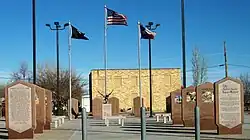 The Andrews County Veteran Memorial is a memorial in Andrews, Texas which was created in 2006 as a tribute to those Andrews County residents who have served in the United States' armed forces.[1] On entering the Andrews County Veterans Memorial, one can see fifteen engraved granite tablets. Each tablet is three feet wide and six feet tall, and weighs 2000 pounds. The tablets were built and installed by Sadler & Son Monument Works of Hobbs, New Mexico. The names of 2600 veterans from Andrews County are engraved on the tablets. The memorial incorporates works of art by Ray Simon of Youngstown, Ohio, and was completed at a cost of $150,000 which was raised via donation.[2]