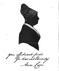 - ^ Graham, E. Dorothy (2004). "Carr, Ann (1783–1841), Female Revivalist Society preacher | Oxford Dictionary of National Biography". Oxford Dictionary of National Biography (online ed.). Oxford University Press. doi:10.1093/ref:odnb/41258. Retrieved 2019-08-13. (Subscription, Wikipedia Library access or UK public library membership required.)