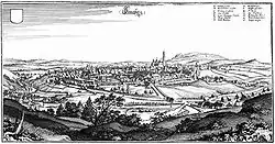 Barbara Uthmann introduced braid and lace-making to the town in 1561 and the craft was further developed in the 1590s by Belgian refugees fleeing the policies of Fernando Álvarez de Toledo, 3rd Duke of Alba, Spain's governor over the Low Countries.[4] The industry was further developed in the 19th century, when Annaberg[5] and Buchholz[6] were connected by rail to Chemnitz and to each other, with both settlements having specialized schools for lace-making.[5][6] The population of Annaberg in the 1870s was 11,693.[5] This had risen to 16,811 by 1905,[4] with another 9,307 in Buchholz.[6]