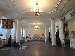 Some repair work was carried out during the Second World War, when a military hospital opened in the grounds of the monastery during the siege of Leningrad.[2] Suvorov's grave became a source of patriotic inspiration, and in November 1942 the grave was repaired and decorated with panels and flags. Soldiers defending Leningrad would also visit to pay their respects.[2] After repairs, the building opened on 15 May 1950 as a museum display of historic funerary monuments under the auspices of the State Museum of Urban Sculpture.[1][2] Between 1988 and 1999 a complex restoration of the Annunciation Church took place.[4] After the fall of the Soviet Union the church building remained in the ownership of the State Museum of Urban Sculpture, despite requests by the Orthodox Church for its return. On 7 April 2013, the 300th anniversary of the monastery, vice-governor of Saint Petersburg Vasily Kichedzhi announced that the Annunciation Church would be returned to the Alexander Nevsky Lavra.[2] The return of the church to the monastery authorities has however been complicated by questions around the ownership of the memorials.[14][15]