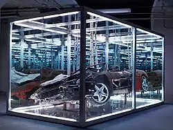 Kalos Thanatos (KΘ), Greek for “beautiful death”, originated when James burned his Ferrari F335 Spyder in a birch forest, which was later placed in a glass box with birch tree trunks. James drew inspiration from the ancient Greeks, who historically made sacrifices to Aphrodite in birch forests.[4]