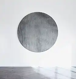 Shields is an exhibition of curved disks made of brass, bronze, and steel "scarred with minimalist markings."