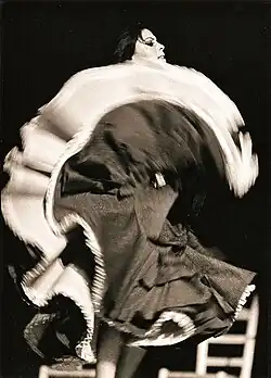 Antonia Singla Contreras was born in 1948 in the neighborhood Somorrostro de la Barceloneta, in Barcelona, Spain.[2] At the time of her birth, this neighborhood was a shanty town and a Romani community.[3] A few days after her birth she was in pain, perhaps caused by meningitis, and lost her hearing.[2] In 1968, she made a partial recovery from her medical condition.[1] While she was growing up, La Singla learned to dance rumba, fandango, bulerías and flamenco with considerable skill.[4] Singla began to dance by watching her mother clapping, absorbing the rhythm and turning it into a really remarkable dance full of emotions. It is said that she did not speak fluently until the age of 16.[4]