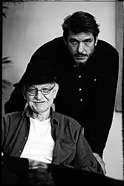 The Escohotado family, a long-time resident of the northwest of the Madrid mountain range, has its first notorious member with Escohotado's great-grandfather, Vicente, who supported the Glorious Revolution of 1868 as mayor of Galapagar.[12] The son of the former (and grandfather of Escohotado), also named Vicente, was one of the first scholarship holders of the town to study law,[13] and when he had already published an extensive history of theater in verse, La teatrada (1925),[14] along with several books of planhs and songs, he went from being a solicitor to mayor of El Escorial.[15] The sixth of his sons, Román (1908-1970), father of Antonio Escohotado, began by voting for the socialist Julián Besteiro and ended up signing the Manifesto of the Spanish Falanx.[16] He was head of Dionisio Ridruejo's secretariat during his time as director general of Propaganda, directed Radio Nacional from 1941, won the main journalistic awards (including the Mariano de Cavia prize) and was press attaché in Brazil from 1946 to 1956.[17]