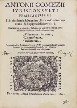 Antonio Gómez (born after 1500; died before 1572) was a Spanish jurist and priest.
