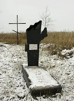 ![]() A monument to the residents of Antonovka (mainly Jews) who were killed in 1941–1943. The monument was erected in 2004 by the local secondary school at the site of the former Jewish cemetery. The Jews were killed at another location. | |