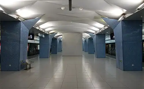 It is the nearest station to the National Olympic Sports Center, and is therefore decorated with sports elements.[2]