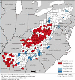 12. ^ a b "Distressed Designation and County Economic Status Classification System - Appalachian Regional Commission".