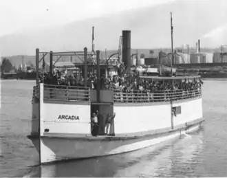 The steamboat Arcadia, built in 1929, was one of the last commercial steamboats placed into service on Puget Sound. The vessel later served as a prison tender under the name J.E. Overlade, and after that, as Virginia VI, as an excursion vessel.