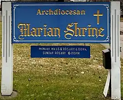 The Archdiocesan Marian Shrine, formerly known as the Milwaukee Fatima Shrine and the National Shrine to Our Lady of Fatima, is of the Roman Catholic Church and a shrine to the Virgin Mary. It is operated by the Roman Catholic Archdiocese of Milwaukee, which acquired the property from the Dominican Sisters of the Perpetual Rosary.[1] It is located in Milwaukee, Wisconsin. The shrine was dedicated on April 26, 1948.[2] The shrine also has a small indoor chapel and stone representations of the 15 mysteries of the rosary.