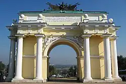 Arches of Triumph in Novocherkassk (Russian: Триумфальные арки Новочеркасска) are monuments of Russian Classicist architecture. The monumental complex consists of two triumphal arches western and northern, situated respectively in the south-west and north of Novocherkassk. Built in 1817 to commemorate the victory in the Patriotic War of 1812, they symbolize the military contribution of the Don Cossacks in the struggle against Napoleon.[1] The only triumphal gates in Southern Russia are officially declared objects of cultural heritage of federal significance.[2]