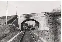 Although the Cambrian main line through Arddleen was opened for service on 1 May 1860, Arddleen station did not come fully into service until 1863. The line was built by the Oswestry and Newtown Railway, then absorbed into the Cambrian Railways, and it became part of the Great Western Railway during the Grouping of 1923. The line then passed to the Western Region of British Railways on nationalisation in 1948. Arddleen was reclassified as a Halt in June 1954 when the original station building, which incorporated a small booking office and waiting room, was replaced by a simple wooden shelter. In the same year the platform may have been rebuilt showing the fancy stone facing on the platform frontage.