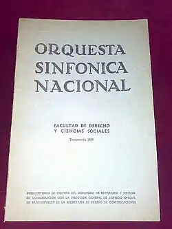 Established as the State Symphony Orchestra, on November 20, 1948, via a bill (Law 35879) signed by President Juan Perón, the orchestra was created that it could "constitute the pitch of universal resonance that our music needs, while providing the most effective means of popular education in the arts."[1]