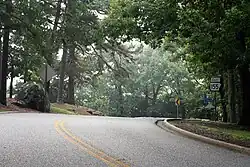 The route begins at Sunset Point on the north rim of Mount Nebo, in its respective state park, Mount Nebo State Park. It is surrounded by a dense forest while on the mountain and passes near the historic Mt. Nebo State Park Pavilion, the visitor center, and other points of interest in the park. Highway 155 winds down the mountain on eleven hairpin curves with very steep grades, as much as 18% in places. There are no alternative routes, as Route 155 is the only road up or down the mountain. As a result, the route is a popular destination for motorcycle riders, and trailers and RVs over 24 feet are prohibited in the state park.[5] It eventually points due east toward Dardanelle. The route intersects with Highway 22 in the city and terminates.