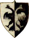 Coat of arms of the Gropa (1680) The Gropa were a noble Albanian family who ruled over the eastern shore of Lake Ochrida as early as the 13th century. In recognition of the services rendered, Sevasto Paulo Gropa was granted dominion over several lands by Charles I of Anjou through a royal decree, dated May 18, 1273. Encompassing parts of the Ebu Valley, they included the villages of Radicis, Cobocheste, Zuadigorize, Sirclani and Crave Zessizane.[14] Grand Zupan Andrea Gropa assumed control of Ochrida following the decline of the Prilep Lordship in 1371. Under his rule, the region remained an independent domain until 1380, when Karl Thopia, another prominent Albanian lord, took over governance. Zaccaria Gropa distinguished himself as a commander in several battles against the Turks and was head of the colony that migrated to Sicilia in 1465.[15] The coat of arms of the Gropa lineage is depicted in the 1680 catalogue "La Universita delle Insegne Ligustiche Delineate da Gio Andrea Musso" (p. 13)