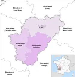 The borders of the arrondissements of Charente were modified in January 2017:[4]