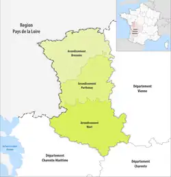 The 3 arrondissements of the Deux-Sèvres department are:[1]