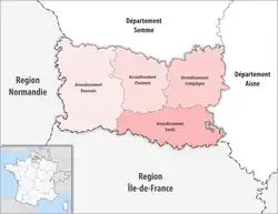 The 4 arrondissements of the Oise department are:[1]