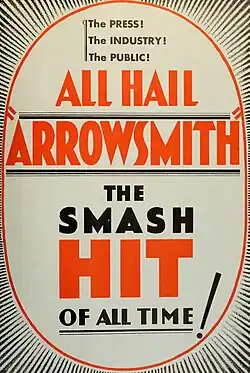 Arrowsmith is a 1931 American pre-Code drama film directed by John Ford and starring Ronald Colman, Helen Hayes, Richard Bennett, and Myrna Loy. It was adapted from Sinclair Lewis's 1925 novel Arrowsmith by Sidney Howard, departing substantially from the book regarding Arrowsmith's womanizing and other key plot elements. The pre-Code film received four Oscar nominations, including the Academy Award for Best Picture, Best Writing, Adaptation (Howard), Best Cinematography (Ray June), and Best Art Direction (Richard Day).[2]