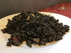There are many other related dishes to the arroz negro. Some of them are the risotto nero[2] (Venice, Italy), octopus with black rice and shrimp Archived 2017-11-01 at the Wayback Machine,[3] and some others.
