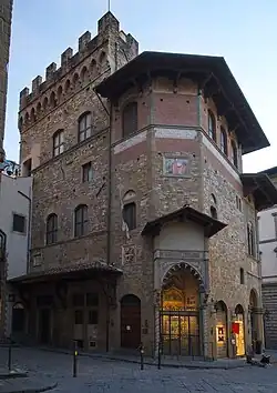 The original building intended as the residence of the Arte della Lana was erected in 1308, as attested by two Latin inscriptions on the fronts of the current building, incorporating an older tower of the Compiobbesi family, partly burnt down in 1284, after the expulsion of the family since they were Ghibellines. In the following centuries, further rooms were built to expand the headquarters, due to the considerable public activity of the Arte.