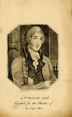 Arthur William Hodge (c. 1763 – 8 May 1811) was a Tortolan planter, politician and serial killer who was executed by hanging in 1811 for murdering one of his slaves. Born in the British Virgin Islands, Hodge studied at Oriel College, Oxford, matriculating in 1781 before briefly serving as an officer in the 23rd Regiment of Foot. Returning to Tortola in 1803, he settled down to a life as a plantation owner while also pursuing a political career, serving in both the colony's Executive Council and its Legislative Assembly. In 1811, Hodge was hanged after being found guilty of murdering a slave he owned, the first British subject to be executed for such a crime.[1]