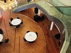 The three galleries in Artisphere (Terrace, WIP {Works in Progress}, Mezz Gallery, along with the Artist in Residence Studio hosted various types of art exhibits focused on topics including political cartoons,[30] collaborative exhibitions with outside groups such as the Washington Project for the Arts, Washington Sculpture Group focussing on sustainability[31] and interactive media[32] paintings, sketches, sculpture, photography, video, audio, collage and other media. The Mezz Gallery was dedicated to showcasing the work of Artists who live, work or have a studio in Arlington County, VA. The Terrace and WIP galleries exhibited contemporary work by local national and international artists. These galleries and related programs were overseen by Visual Arts Curator Cynthia Connolly, Education Director Lisa Marie Thalhammer and New Media Curator Ryan Holladay.[33][34] The programming brought to Arlington encompassed local, national and international artists.