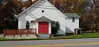 The building was constructed in a predominantly African American community along Guilford Road, one of the "rolling roads" for hand-rolled barrel shipment of tobacco to market in Annapolis, Maryland.[1] The site is associated with religious activities since 1860, in the final years of slavery in the newly formed Howard County. The wood-frame church has a later structure adjoined to serve as a schoolhouse. The church cemetery is situated to the North and West of the church. The graveyard boundaries were not formally defined, with several unmarked gravemounds surrounding the site. There are ten historical sites registered in the Maryland Historical Site Registry along the historical road within a mile of the church, but a reviewer commented there are "none along this segment of the road". The adjacent historic residences under pressure from development have had their construction dates removed from state tax records.[2] The church has been reviewed and certified as being a significant example of architecture, ethnic history and religion.[3] The Mt. Moriah Lodge No. 7 was built adjacent to the church in 1875.[4][5][6]