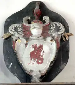 • John de Orwey, of Orwey in the parish of Kentisbeare, Devon, whose wife was Juliana de Esse, heiress of Ash, having been given it by Henry de Esse.[15] The arms of Orwey of Orwey and Ash were: Argent, on a chief indented sable three crosslets fitchee or.[16] The arms Ermine, on a chief indented sable three crosslets fitchee or are shown in the 4th quarter of the escutcheon in the oil painting of Richard Drake (1535–1603) by George Gower (1540–1596) in the National Maritime Museum, Greenwich.[17]