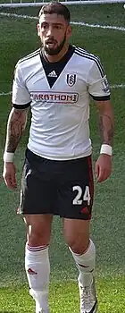 On 31 August 2012, Dejagah joined Fulham on a three-year deal with an additional year's option, reportedly for €2.5 million, reuniting with his former Wolfsburg teammate Sascha Riether.[13] He became only the third Iranian, after Andranik Teymourian and Karim Bagheri, to play in the Premier League.[4] He made his league debut on 20 October, in a 1–0 home win against Aston Villa, coming off the bench for Fulham with 20 minutes remaining.[14] He made his first start at Arsenal on 10 November, less than a month after his debut, in a 3–3 draw, while his first assist came on New Year's Day to Dimitar Berbatov in a 2–1 win at West Bromwich Albion.[15]