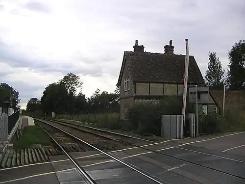 It was built initially as one of seven new halts for a steam rail motor service between Bedford & Bletchley inaugurated in the autumn of 1905 and was initially constructed of old sleepers; it temporarily closed for two years (January 1917-May 1919) as a World War 1 economy measure.[1] Under LMS auspices, it had its platforms rebuilt and these were lengthened again by BR in 1959.