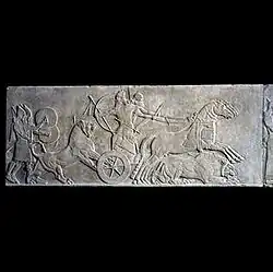 The Balawat Gates, or the Balawat Bronze Bands are three sets of decorated bronze bands that had adorned the main doors of several buildings at Balawat (ancient Imgur-Enlil). Two of them date to the reign of Ashurnasirpal II. The third set of the Bronze Bands depicts the exploits of his son Shalmaneser III.[7][8]