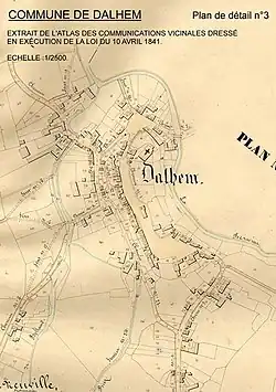 The Atlas des chemins vicinaux (French) or Atlas der Buurtwegen (Dutch) was produced in order to preserve the Belgian street network from possible usurpations. A law passed on 10 April 1841 led to the creation of an atlas of streets, roads and paths in each town, to specify officially the Belgium public roads network.