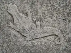 All Saints Church, Aughton is located at the far end of the village and overlooks vast expanses of the floodplains of the River Derwent. Tucked away in the village, it can only be accessed on foot through a small gate and field adjacent to Aughton Hall. An historic church, famous for its association with Robert Aske, leader of the insurgents in the Pilgrimage of Grace, October 1536. Aske was executed for treason on 12 July 1537.[3] The church displays a mixture of architectural designs as it has been altered throughout the years, but is noted especially for its Norman arch between the chancel and nave. On the chancel floor a well-preserved ancient brass of a knight in 15th century plate armour and his lady can be found, although much of the lady is now missing. Standing in the churchyard and looking up at the tower, (which was rebuilt by Christopher Aske sometime after 1536), a shield with six quarterings can be seen engraved on the outside wall, now badly weathered but it offers the following inscription in old French text: "Christofer le second filz de Robert Ask chr oblier ne doy, Ao Di 1536." This is literally translated as: "Christopher, the second son of Robert Aske, chevalier, ought not to forget the year of our Lord 1536." Also on the tower is a benchmark of the time and carved, in sunk relief, a newt or salamander otherwise known in Old English as an Ask.