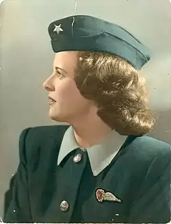 Clare McHugh Douglas, upon completion of her training as an air hostess for ANA, c. 1947