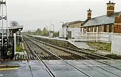 When the railways were nationalised in 1948, services at Avonmouth Dock came under the aegis of the Western Region of British Railways. By 1955, service levels had decreased slightly to 28 trains per day from Bristol and 29 return, but the services were at regular intervals. Passenger numbers however dropped sharply in 1961 as the result of a fare increase, and so in 1962 a new reduced timetable was enacted, which lost more passengers. A year later in 1963, the Beeching report suggested the complete withdrawal of services along the line, but ultimately only those beyond Severn Beach or via Henbury were withdrawn.[18] Goods services from the station ended on 20 June 1966, the same day that the station was renamed "Avonmouth".[19][22] The bay platform was taken out of use and the land later taken for industrial buildings.[19] From 17 July 1967 all staffing was withdrawn from stations along the line, including Avonmouth, with tickets issued by the train guard.[18]: 49–51  The station buildings on the island platform survived into the 1970s, as did the footbridge, but with the exception of the parcels office, all were later demolished.[19][23][24] The parcels office was in use in 2006 as a hairdressing salon. The signal box was closed in January 1969, and in September 1973 the wooden level crossing gates were replaced by automatic lifting barriers.[19] By 1974, service had reduced to 19 trains per day in each direction, with no Sunday services to Severn Beach.[18]: 50 [25]