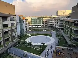 Ayala Malls Manila Bay features two buildings and five floors of retail space, with three levels of basement parking and above-ground Podium Parking from the second to eighth floor. It has the Abueva Atrium (adjacent to a street of the same name) at Building B for events, one-hectare (2.5-acre) Central Garden, IT Zone at the fourth floor, and ten digital cinemas at the fifth floor.[4] The largest among Ayala Malls, the cinemas include an A-Giant Screen cinema, while some have A-Luxe Recliner Seats.[5] The mall also hosts multiple entertainment and leisure facilities including a Timezone branch at 2,000 square meters (22,000 sq ft), formerly the largest in the country.[6] The mall also features the Seda Manila Bay Hotel, a 350-room 4-star hotel which opened its doors in July 2023, and located along the corners of Abueva Road and Aseana Avenue. The hotel was eventually planned to be opened within 2021 while entering full operations in 2022, yet was pushed back due to the effects of the COVID-19 pandemic in the country. The 12-storey hotel features 3 meeting rooms; three restaurants, namely the Misto Restaurant, Straight Up Roof Deck Bar, and the Club Lounge; an infinity pool, a game room, a mini golf course, a gym, and the Seda Spa. The hotel's lounge features artworks from Ann Pamintuan, Francisco "Paco" Guerrero, Eddie Zobel, and Jaime Zobel de Ayala.[7][8]