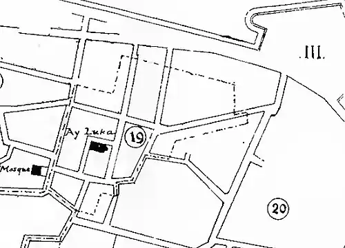 Ayios Loukas is one of the 24 historic Neighbourhoods of Nicosia within the walls.[2] During the Ottoman period it was accounted as one of the Greek Orthodox Quarters of Nicosia.[7] However, all the adjacent Neighbourhoods, such as Yeni Jami and Ak Kavuk (Abu Kavuk), were overwhelmingly moslem in character. By 1946 the Greek Orthodox population had dropped to 33%.[5]