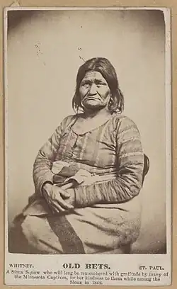 - ^ a b "Old Bets – A Sioux squaw who will long be remembered with gratitude by many of the Minnesota captives, for her kindness to them while among the Sioux in 1862". Library of Congress. Archived from the original on 2021-02-09. Retrieved 2021-08-31.