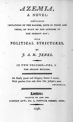 Azemia is a satirical novel, written by William Thomas Beckford, that was first published in 1797. The book parodies what Beckford considered sensationalist writing, as well as political issues of the time.[1]