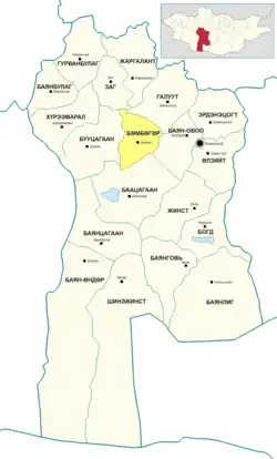 Bömbögör (Mongolian: Бөмбөгөр, Dome) is a sum (district) of Bayankhongor Province in southern Mongolia. In 2006, its population was 2,584.[1]
