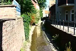 The creek's name has been established only since the 19th century; the reasons for this are unclear. Previously it was known as Willerbach ( German for 'wild brook').