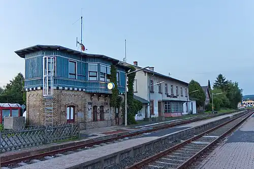The entrance hall of the station is now listed as a monument under the Hessian Heritage Act. The station building is now privately owned and is no longer used for rail purposes. The condition has deteriorated and dilapidated.[4]