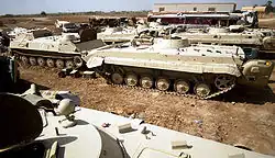 FAPLA deployed BMP-1s in small numbers during an ill-fated 1987 offensive against the National Union for the Total Independence of Angola (UNITA) and its South African allies, which initiated the Battle of Cuito Cuanavale.[24] During Operation Moduler, South African troops captured 2 FAPLA BMP-1s in intact condition and destroyed a third.[24][25] Cuba later deployed a number of its own BMP-1s to southern Angola during a 1988 offensive against South African positions near the border.[21] In 1989, FAPLA renewed its offensive against UNITA during Operation Final Assault, deploying BMP-mounted mechanized infantry for the first time in large numbers.[26] The offensive was abandoned after the units involved suffered heavy casualties; UNITA claimed to have destroyed or captured 200 FAPLA BMP-1s.[26] In 1993, FAPLA ordered almost 300 new BMP-1s from Belarus, Bulgaria, and Russia to replace those lost in the civil war.[27] By 1999, UNITA had captured enough BMP-1s and BMP-2s to integrate them into a single mechanized unit of battalion strength.[26] However, UNITA lacked the resources to keep the vehicles well maintained, and suffered from an erratic supply of diesel fuel which made prolonged mechanized operations unsustainable.[26] UNITA's mechanized capability was destroyed after several pitched battles with the superior FAPLA forces in late 1999.[28]