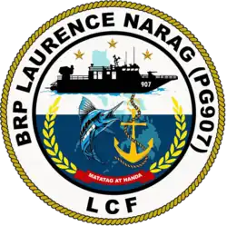 BRP Laurence Narag (PG-907) is the sixth ship of the Acero-class patrol gunboat of the Philippine Navy. She was commissioned on 21 May 2024, just before the Philippine Navy's 126th Anniversary.[4]