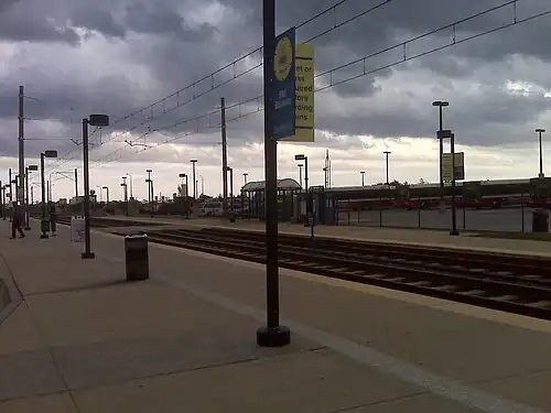 BWI Business District station is a Baltimore Light Rail station in the BWI Business District, north of the Baltimore-Washington International Airport in Linthicum, Maryland. There are currently 36 free public parking spaces and connections can be made to MTA Maryland's Route 17 and 99 buses, and Howard Transit's Silver Route from this station.[2] Additionally, portions of the BWI Trail can be found across the street from the parking lot.