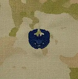 The Space Operations Badge is awarded to 13S space operations officers and 5S0 space systems specialists. It is awarded in the grades of basic, senior, and command. The first space badge was authorized on 4 November 1982 and issued to 20XX space operations officers, before renamed the Space and Missile Badge on 22 October 1993 in recognition of the merging of the 18XX missile operations officer and 20XX space operations officer career fields into the 13S space operations officer career field.[4] The section space badge, known as the Space Operations Badge, replaced the first space badge on 1 November 2005 and was initially known as the Space Badge.[5] On 1 January 2004, it was renamed the Space Operations Badge.[6]