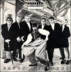 "Baggy Trousers" is a song by the English ska and pop band Madness from their second studio album Absolutely (1980). It was written by lead vocalist Graham "Suggs" McPherson and guitarist Chris Foreman,[2] and reminisces about school days. (Mike Barson also received a writing credit in error, the correct McPherson/Foreman credit being used for subsequent releases.) The band first began performing the song at live shows in April 1980.[3]