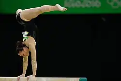 The balance beam is an artistic gymnastics event held at the Summer Olympics on which only women compete. Women started competing in and earning medals at apparatus finals in 1952.[1]