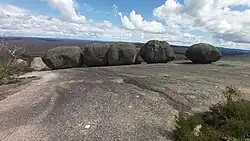 This regolith has created a landscape with many exposed inselbergs of granite rocks, some balancing on top of each other, or forming natural arches.
